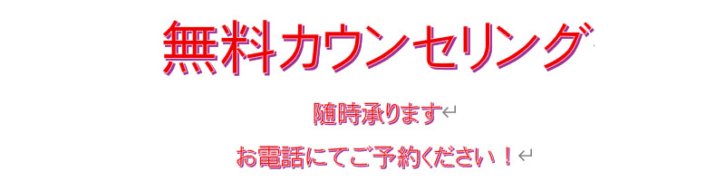 1月キャンペーン実施中 無料カウンセリングにてご相談ください! 詳しくはお電話にて
